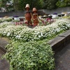 市役所花壇植え付け・ハンギングバスケット作成お手伝いに行き、美しいパンジーに遭遇。